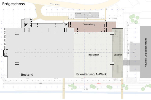des best. Produktionswerks mit Anbindung an das geplante Logistikzentrum.